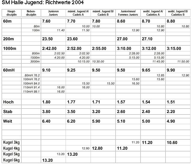 | Hallenwettkämpfe Wintersaison 2004 | Start | ||||||||||